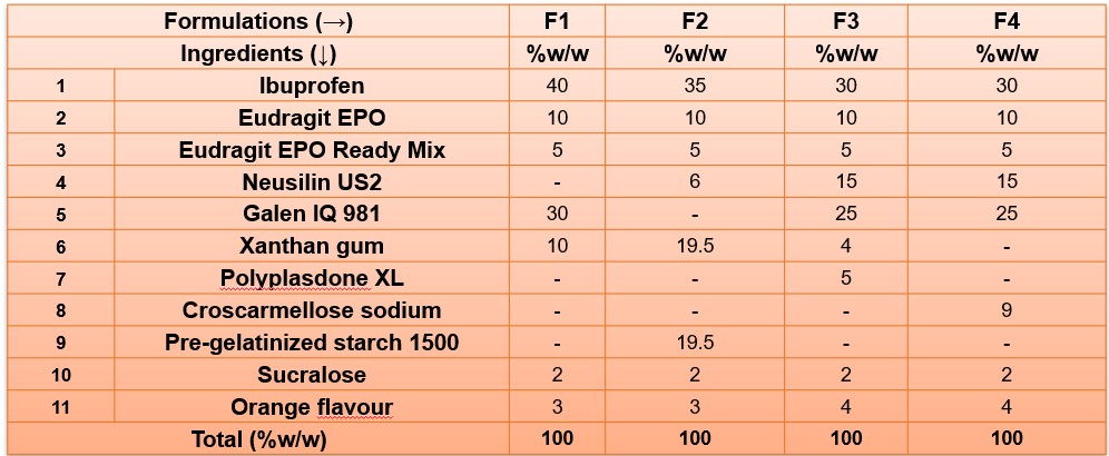 Ibuprofen four-formulas composition