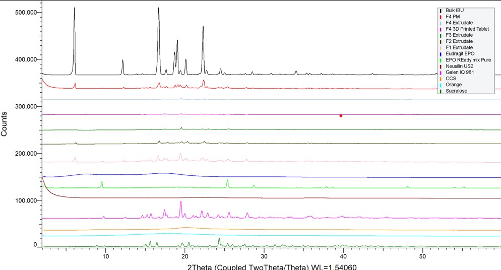 X-ray powder diffraction (XRPD) of bulk vs formulations