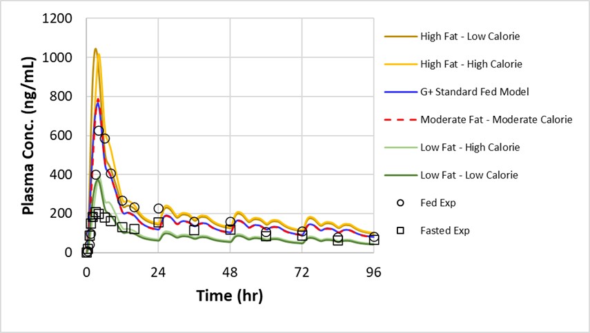 Figure 3: Sensitivity of Plasma Concentration to Meal Type for 150 mg Tablet of CVN424 in Human.