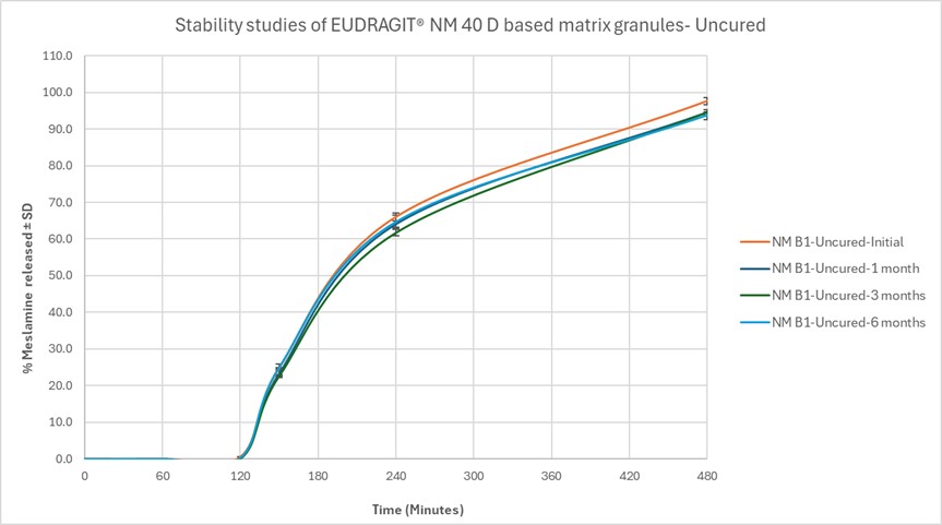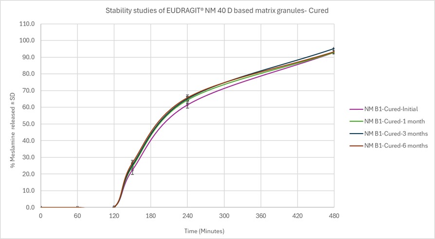 Image 3: Results of accelerated stability studies of EUDRAGIT® NM 40 D based mesalamine matrix granules (Cured) at 40°C/75%RH condition