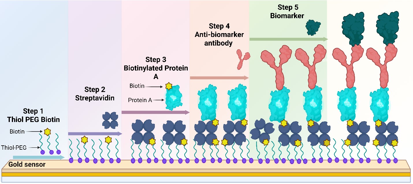 Figure 1. Schematic of novel biomarker capture surface generated through a biotin-streptavidin layer formation.