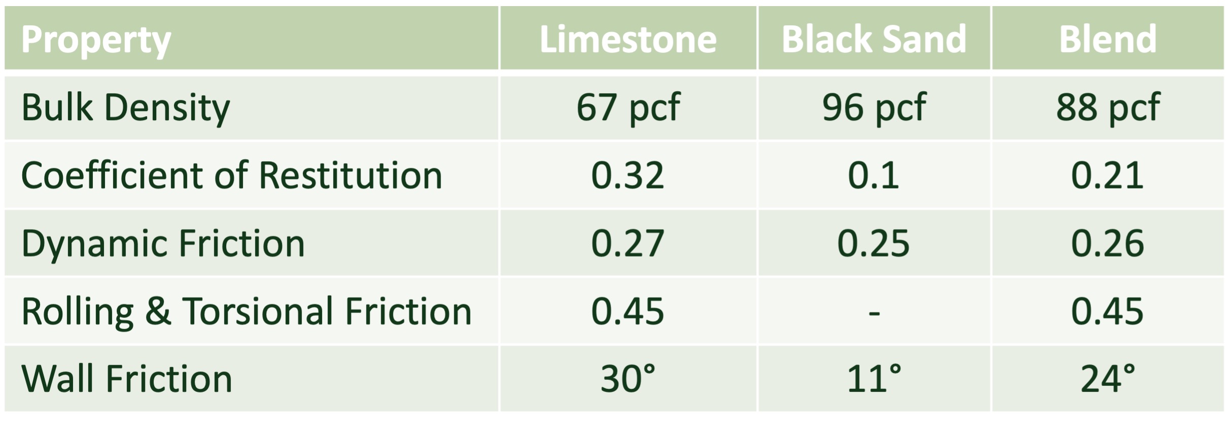 DEM calibration parameters for cohesive limestone, free-flowing sand and their blend