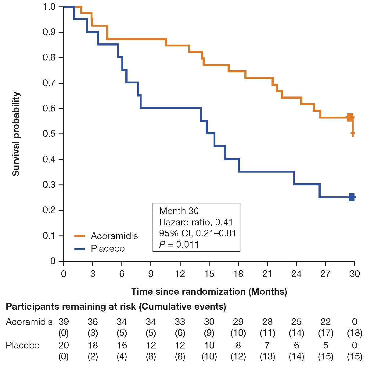 Figure 1. Kaplan–Meier survival curve for ACM or first CVH through Month 30 in the ATTRv-CM group.
