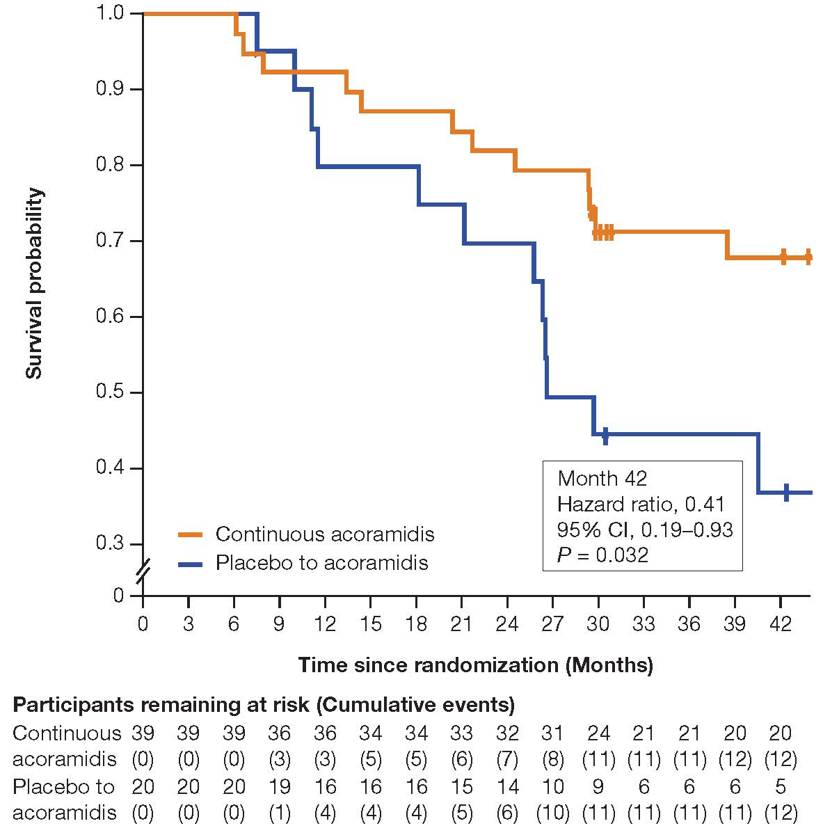 Figure 2. Kaplan–Meier survival curve for ACM through Month 42 in the ATTRv-CM group.