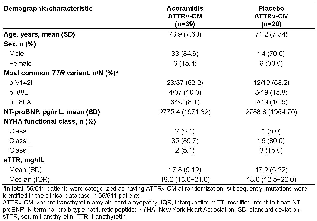 Baseline demographics and characteristics of ATTRv-CM participants (mITT population)