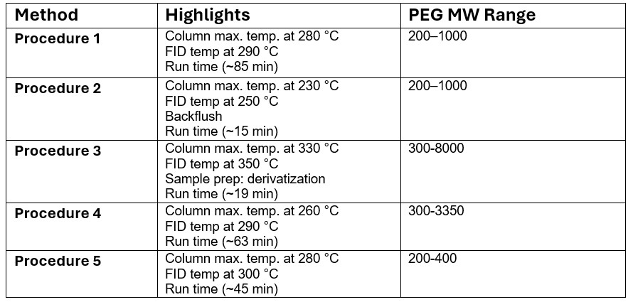 Table 2. Summary of EG/DEG Methods for Polyethylene Glycol in Chapter <470>