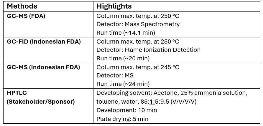 Table 3. Summary of EG/DEG Methods for Liquid Drug Dosage Forms