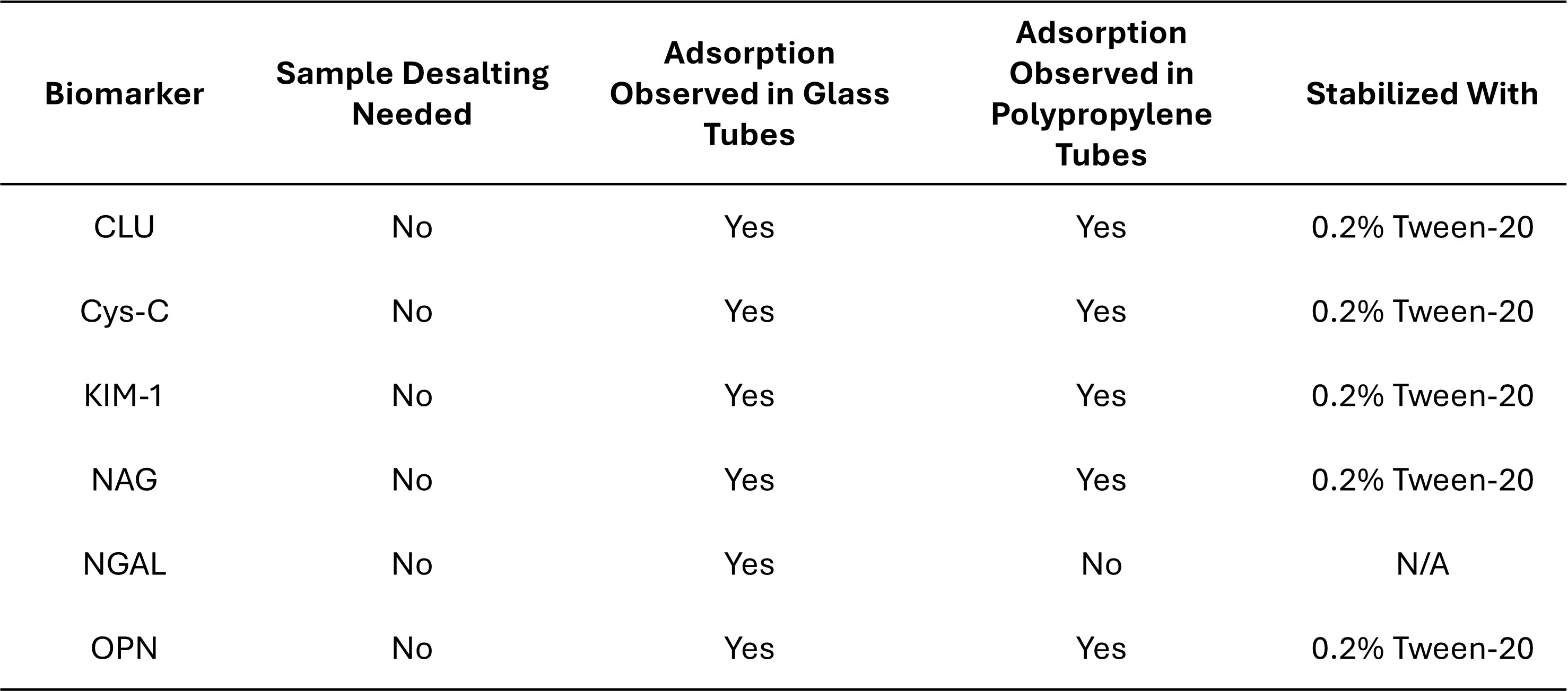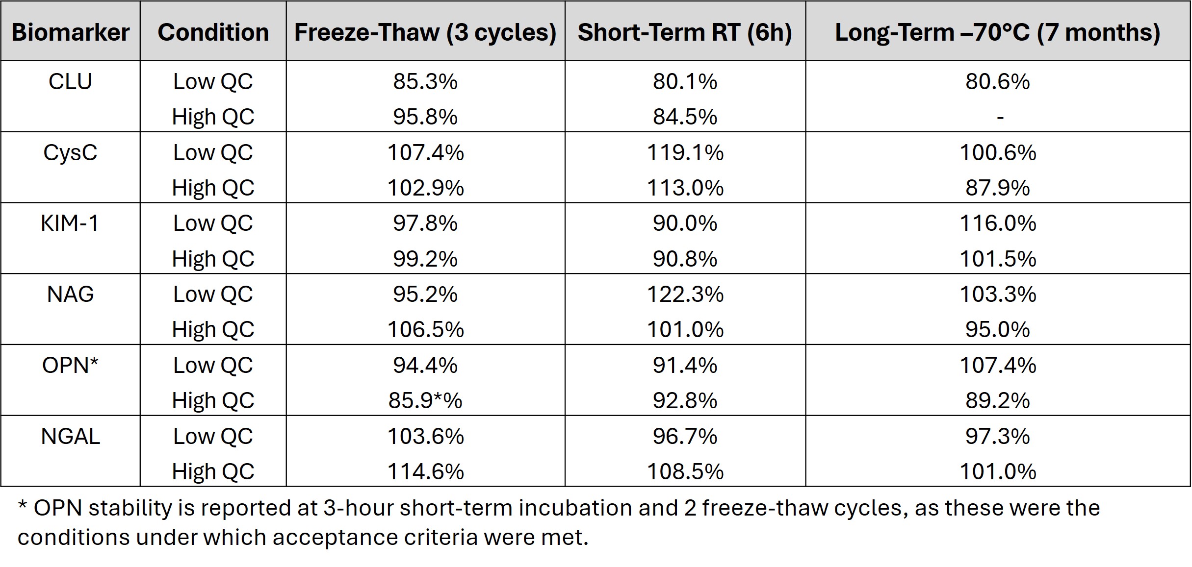 Table 2. Stability Summary for Kidney Biomarkers (% of Theoretical Concentration)