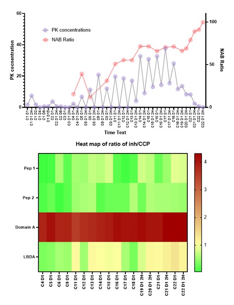 Figure 3. PK Profile and NAb Ratio Over the Course of Treatment and Heat Map of Inhibition/CCP Ratio for Domain Characterization Tiers 1-4.