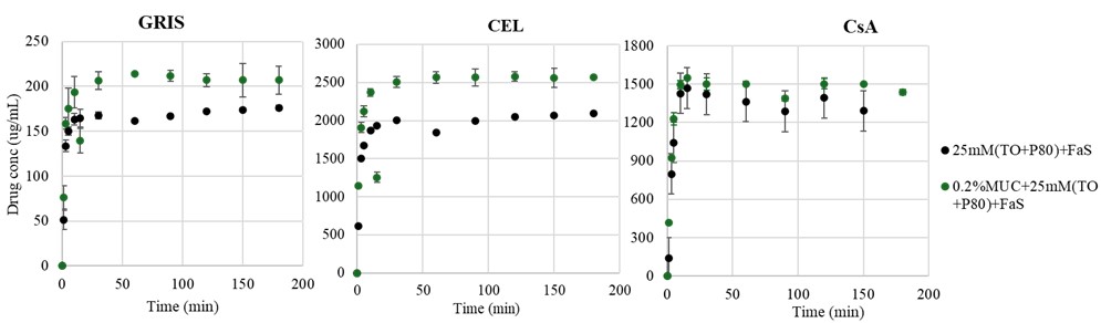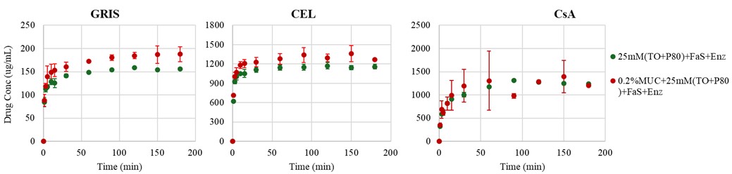 Figure 3: Effect of digestion on drug dissolution in mucin-containing media.