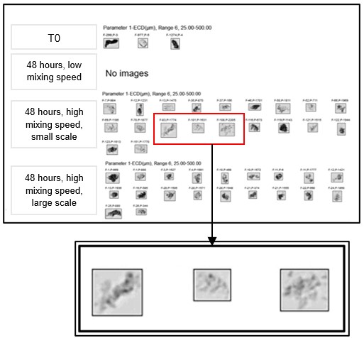 Microflow imaging (MFI) data suggests a significant impact of air entrainment on product aggregation and particulate formation during high mixing speeds.
