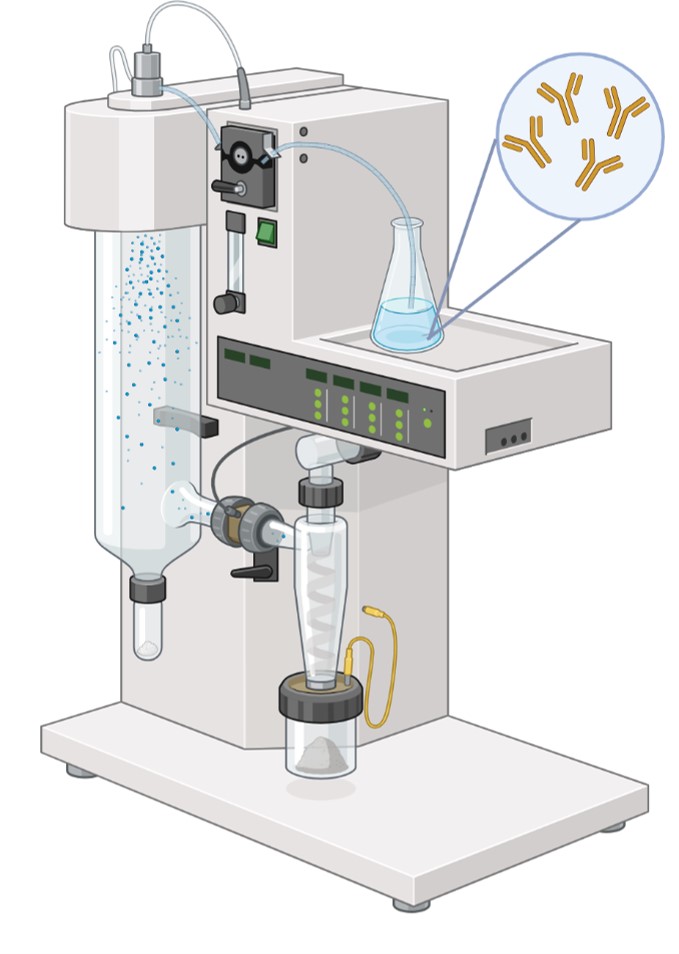Schematic illustration of the spray drying process for monoclonal antibody formulation.