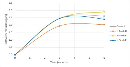 Figure 3. NDMA concentration in the capsules over time (up to 6 months).