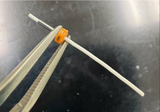 Figure 1. GRF PLGA implant placed in a non-valved 23-gauge canula