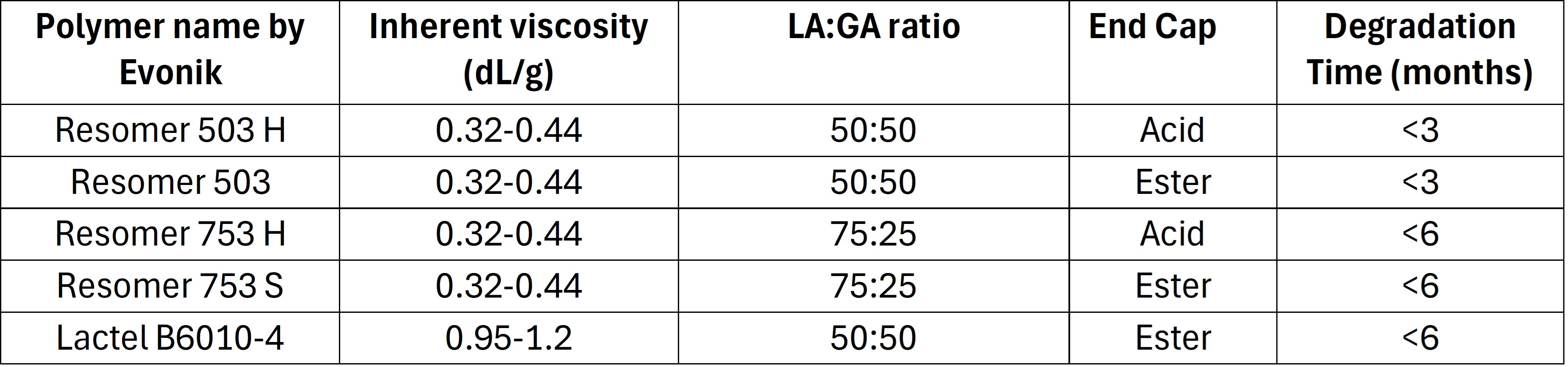 Table 1. PLGA polymers used to prepare the GRF PLGA implants