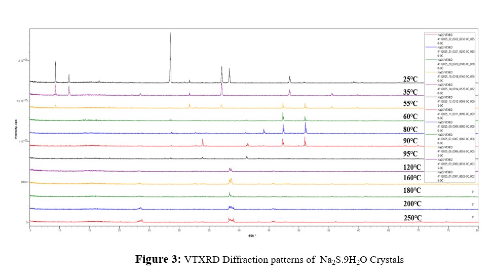 Figure 3: VTXRD Diffraction patterns of Sodium sulfide nonahydrate Crystals
