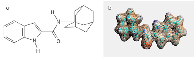 Figure 3. a) Chemical Structure of N2, b) Electron Potential Density distribution on geometry-optimized structure of N2