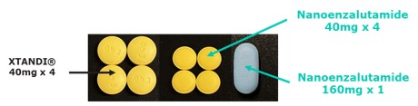 Figure 3: Comparison of Xtandi® and nanoenzalutamide tablets.