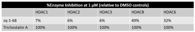 Zq-1-68 selectively inhibits HDAC6 and HDAC8, with minimal inhibition of the other isoforms